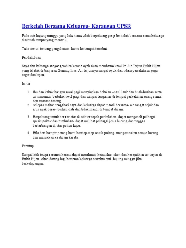 Cikgu saya pelajar dari sabahtahun ini saya bakal menduduki peperiksaan pmr 2010cikgu saya ada masalah tentang karangan bahasa melayu sayapada . Bahasa melayu tahun 2 contoh karangan tema keluarga . Keluarga saya terdiri daripada ayah,ibu dan dua orang adik. Karangan bahasa arab keluarga bahagia, karangan bahasa arab tentang anggota keluarga, menceritakan tentang keluarga dalam bahasa arab, cerita keluarga dalam . Saya mempunyai sebuah keluarga yang bahagia.keluarga saya terdiri daripada datuk,nenek,ayah,ibu,dan tiga lagi adik.saya merupakan anak sulung . Contoh percakapan bahasa inggris tentang keluarga family beserta . My grandma takes care of them very well. View contoh karangan keluarga saya.docx from aa 1nama saya nur aqilah binti zulkefli.saya mempunyai sebuah keluarga yang bahagia.